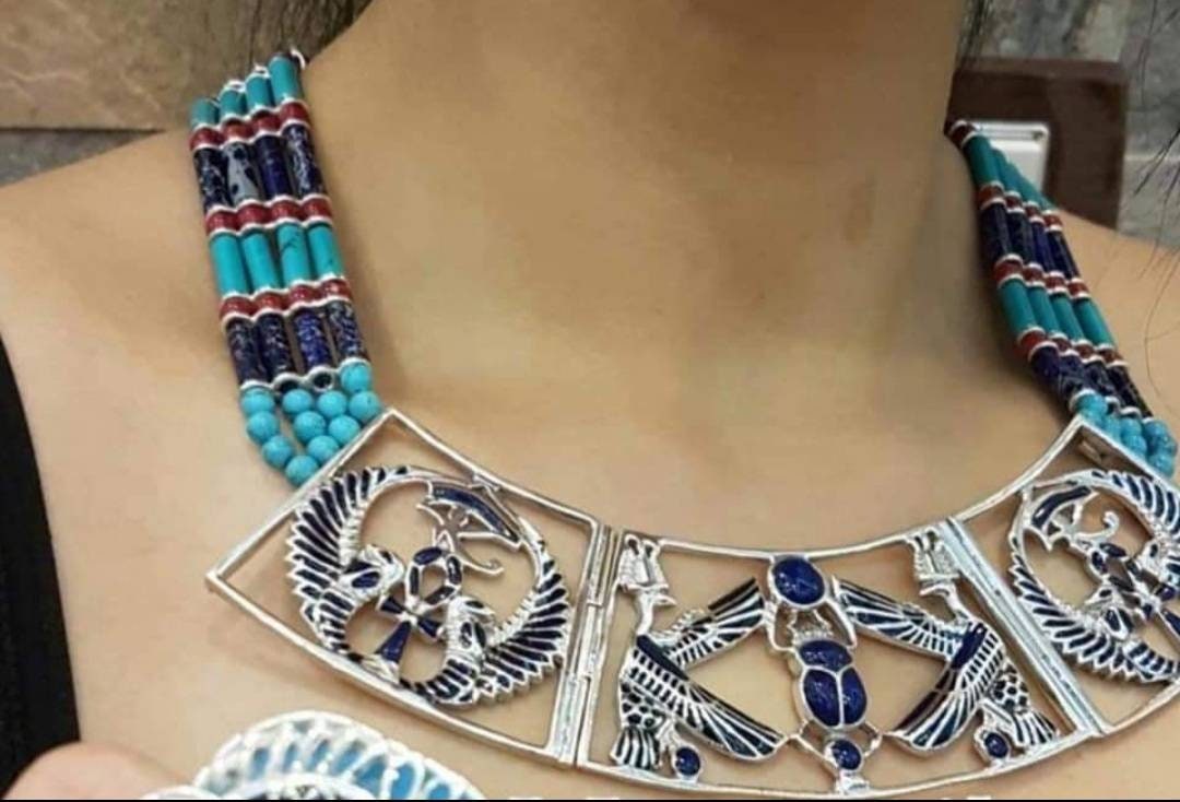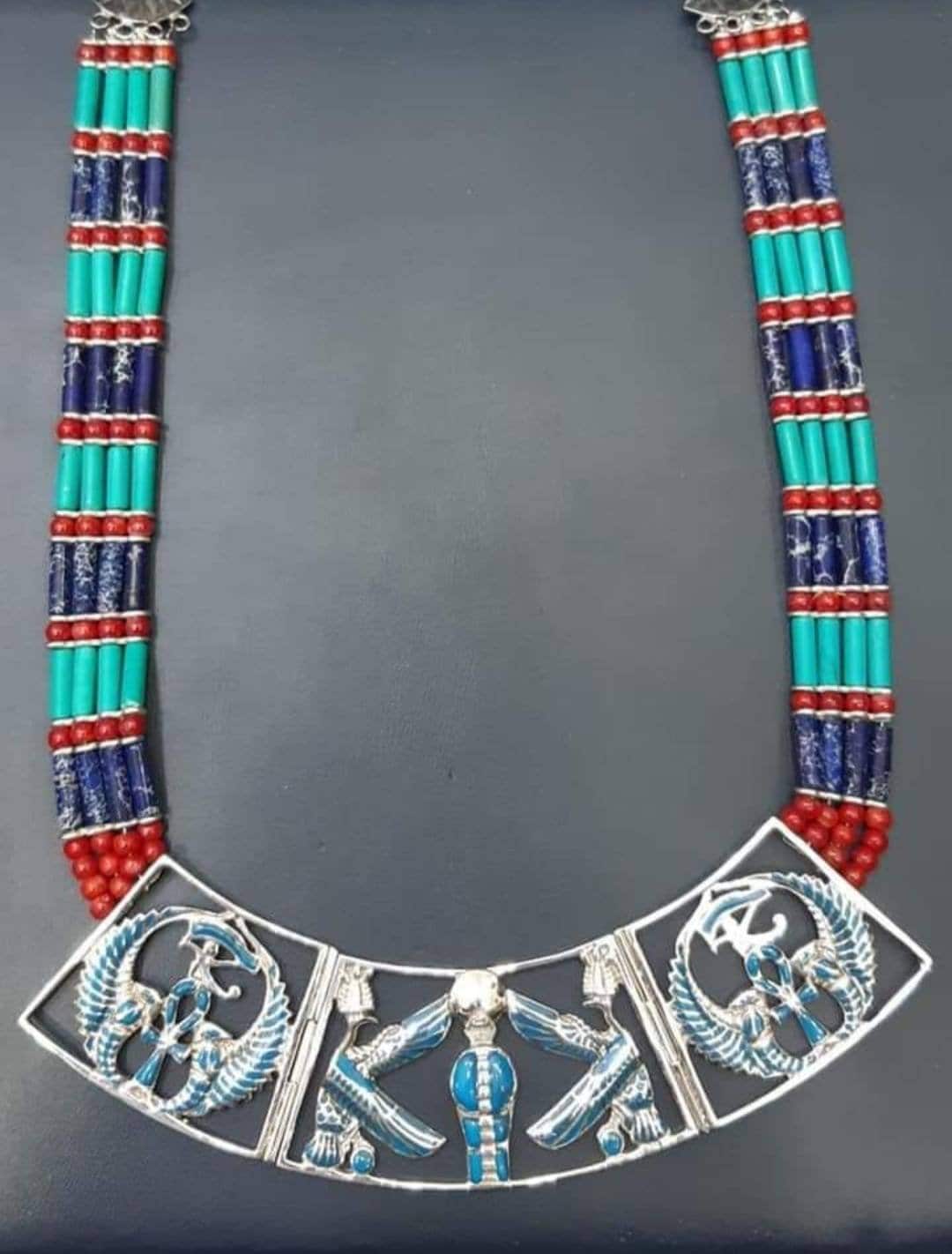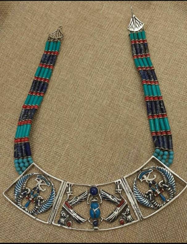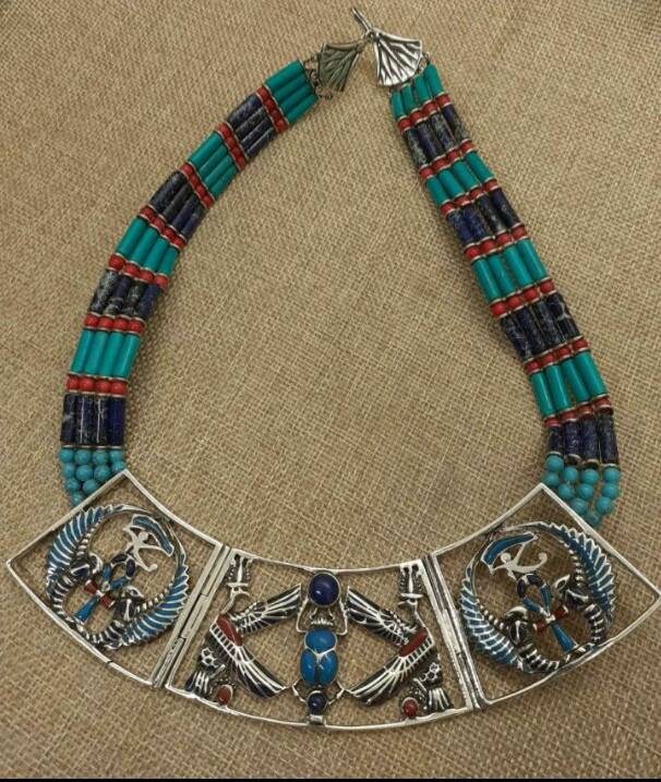 .Handmade Egyptian Scarab with Winged Isis Necklace