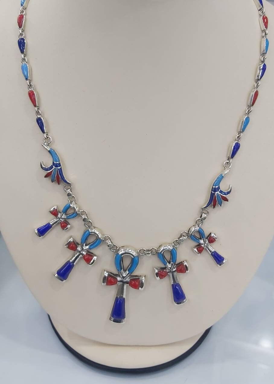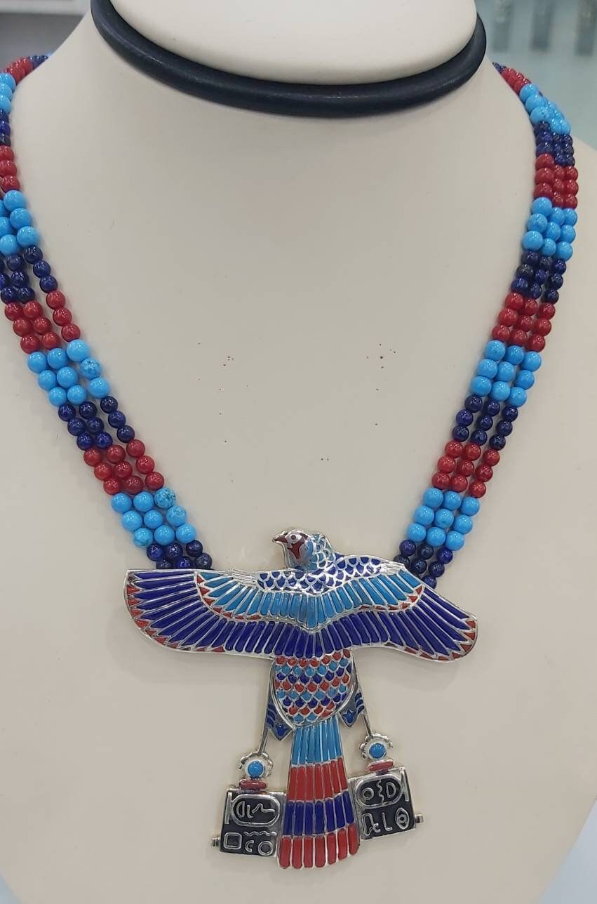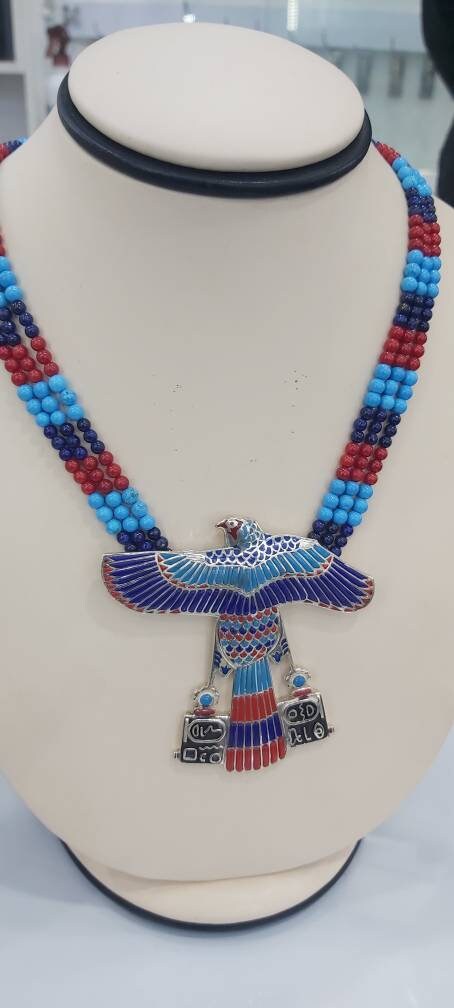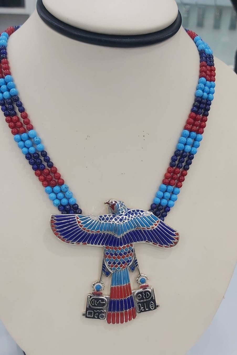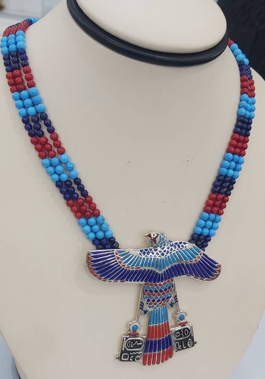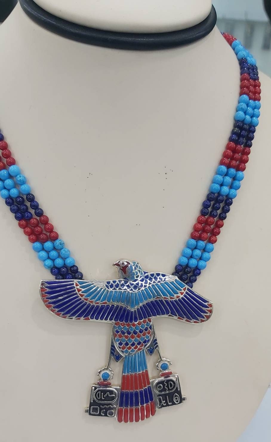 .Handmade Egyptian Horus Winged Falcun With Natural Gemstones